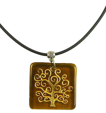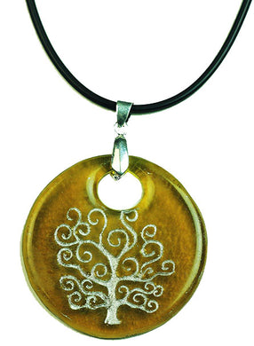 Recycled Glass Bottle Life of Tree Amber Round Necklace