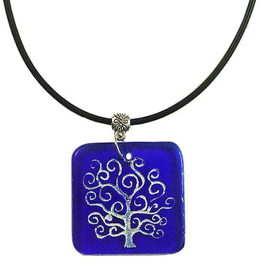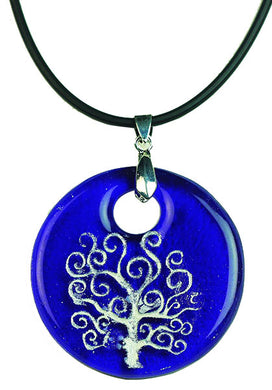 Recycled Glass Bottle Life of Tree Blue Round Necklace