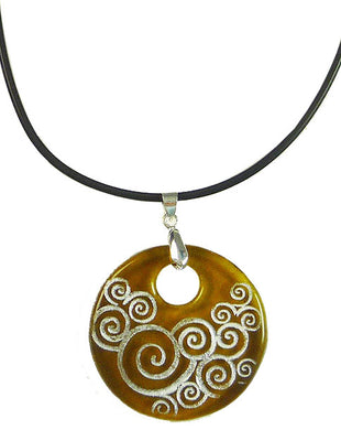 Recycled Glass Bottle Swirls Amber Round Necklace