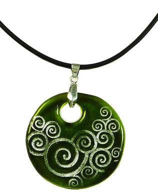 Recycled Glass Bottle Swirls Green Round Necklace